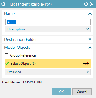 In the SIM environment, create create a \(A=0\) boundary condition. To do so right click on ’Constraints’ and select ’Flux tangent’; then select the six faces of the air volume.