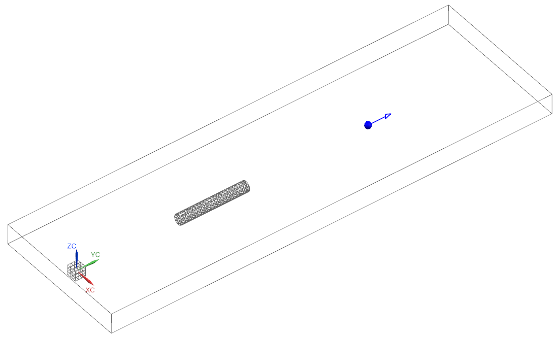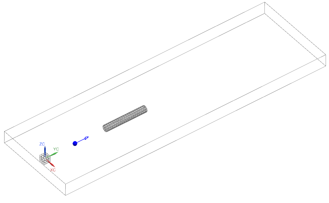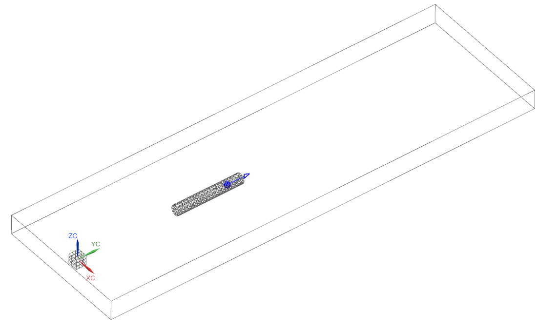 Mesh the surrounding air volume with a ’3D Tetrahedral’ mesh of size 44.9mm; or a finer mesh.