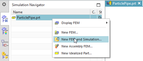Next, switch to the SIM environment (right click on the “.fem” file; then click ’Display Simulation’)