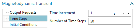 Under ’Time Steps’ select a ’Time Increment’ of 1 \(\mathrm{s}\); and under ’Number of Time Steps’ a total of 50 time steps.