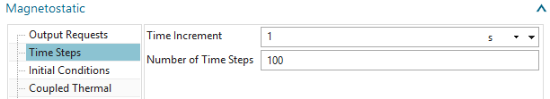 Under ’Time Steps’ select a ’Time Increment’ of 1 \(\mathrm{s}\) with a total of 100 time steps
