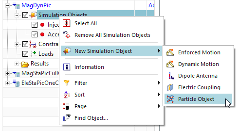 Now, create an particle source. To do so right click on ’Simulation Objects’, then ’New Simulation Object’; and select ’Particle Object’