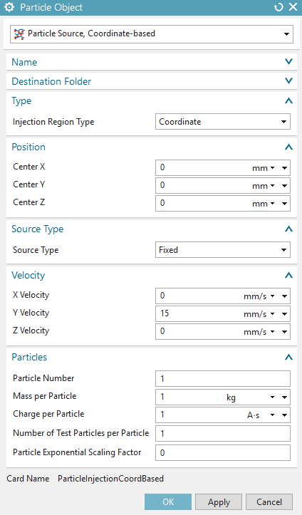 Then, specify the type to be ’Particle Source’ and set the ’Injection Region Type’ to ’Coordinate’.